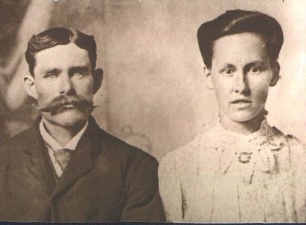 William Franklin St. Clair and Ailcey Cook (to the right in this picture) are my great grandparents. He was born in the vicinity of Sparta (now Christian county) Missouri, shortly after his parents arrived in the area in the late 1840s. Here in the beautiful Ozarks he grew up, married, raised his family and died, and as near as I can determine he never even traveled far from his home. His sweetheart, Ailcey Cook, was born near Sparta just a couple of months later. They must have had a firm commitment to their family and each other right from the beginning because their ornate, colorful, wall-sized wedding certificate which could only be kept on the wall for all to see, has been preserved. To the left in this picture is their eldest daughter, Margaret Evangeline and her husband, Ed West.