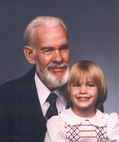 Noah (my father) was born 3 March 1914 in Day, Taney, Missouri, just a hop, skip and a jump from Branson where everyone goes to listen to country music. During the depression, my father would travel west during the summers with his father to participate in agricultural harvests, to thereby produce a little badly needed hard cash. The summer of 1936, during the potato harvest in Idaho he met a lovely young girl at a church dance in Weiser, Idaho. He and Jeaneva Steele fell in love, then married 7 October 1936 and settled in Idaho to raise their family. After the first half of the family was raised, they moved to southern California, where they lived the remainder of their lives. The summer before Noah died, he spent the summer with my family, at which time this picture was taken with his five year old granddaughter, Heidi.